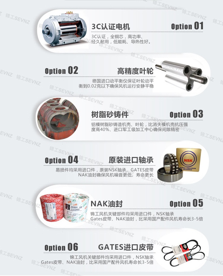 2、風機電機:根據不同規格型號及不同結構用途,其電機差別較大。羅茨風機電機主要根據所需求的技術要求選擇,如普通電機、防爆電機等。通常情況下,電機的大小型號要與羅茨風機機頭的規格相匹配,需要多大壓力和流量的風機,也應配套相對應的風機電機。