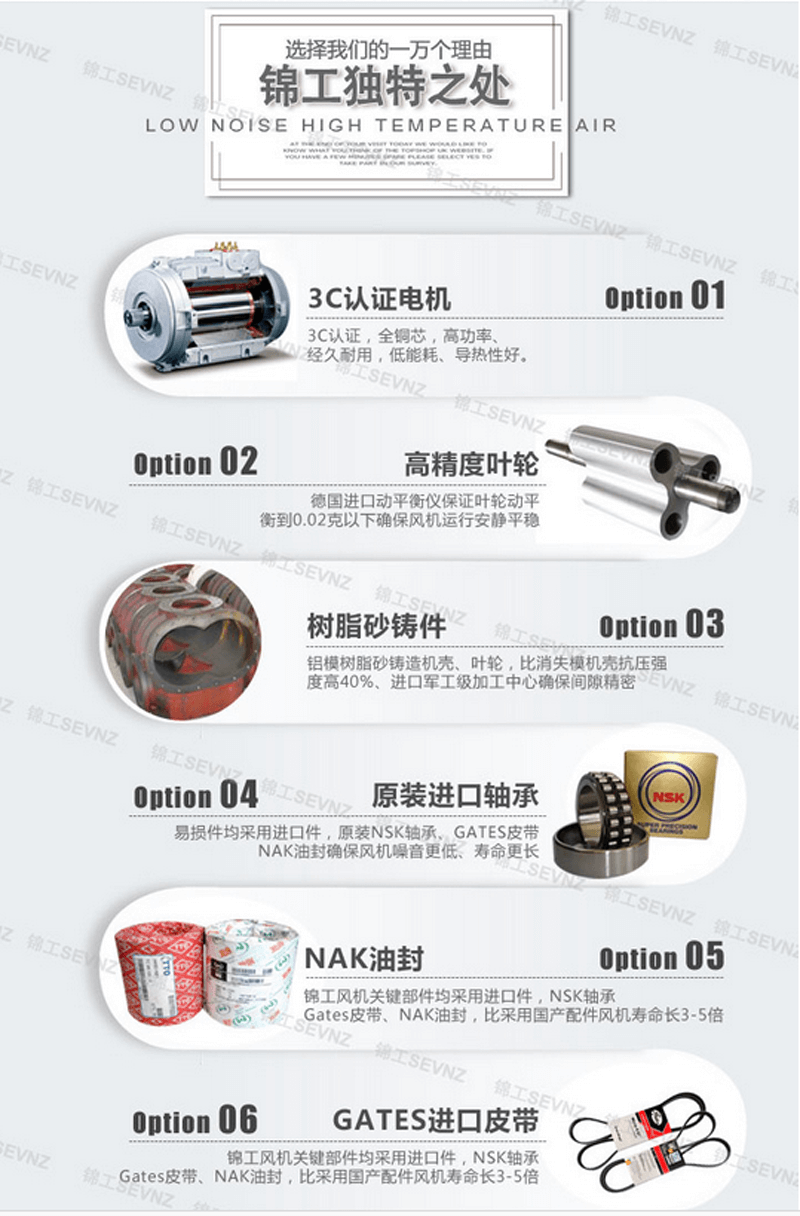 8、風(fēng)機(jī)齒輪采用20CrMnTi經(jīng)滲碳處理,磨削加工,精度達(dá)五級(jí),齒面更耐磨,能明顯降低齒輪噪音。